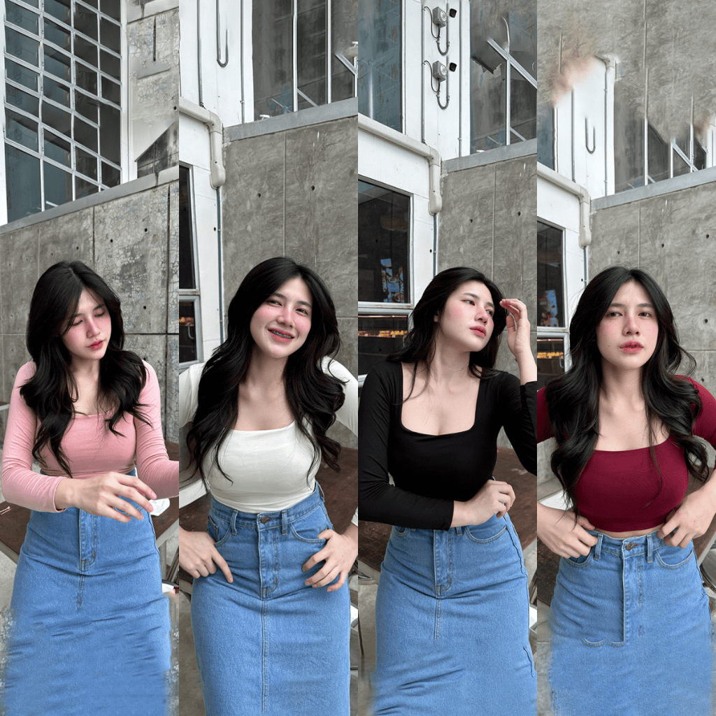 - เสื้อครอปแขนยาว ดีไซน์คอเหลี่ยม โดดเด่นไม่เหมือนใคร